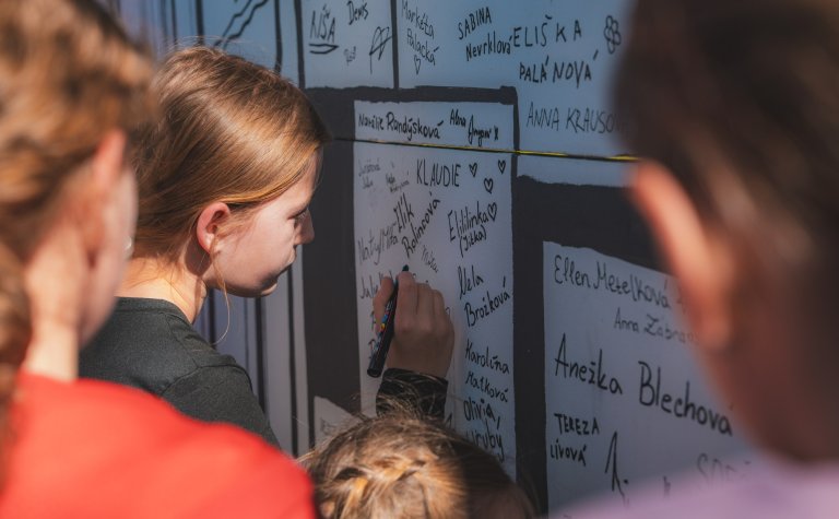 Vedení města Hranic v čele se starostou Ing. Danielem Vitonským a místostarostou Mgr. Karlem Machylem slavnostně poděkovalo žákům a učitelkám Evě Vojtěškové a Pavlíně Zábranské z výtvarného oboru ZUŠ Hranice a v neposlední řadě i jejímu řediteli Mgr. Miroslavu Smrčkovi za malby na zdi u parkoviště v Komenského ulici poblíž letního kina. Poděkování proběhlo přímo u namalované zdi v pondělí 27. dubna.Vedení města Hranic v čele se starostou Ing. Danielem Vitonským a místostarostou Mgr. Karlem Machylem slavnostně poděkovalo žákům a učitelkám Evě Vojtěškové a Pavlíně Zábranské z výtvarného oboru ZUŠ Hranice a v neposlední řadě i jejímu řediteli Mgr. Miroslavu Smrčkovi za malby na zdi u parkoviště v Komenského ulici poblíž letního kina. Poděkování proběhlo přímo u namalované zdi v pondělí 27. dubna.