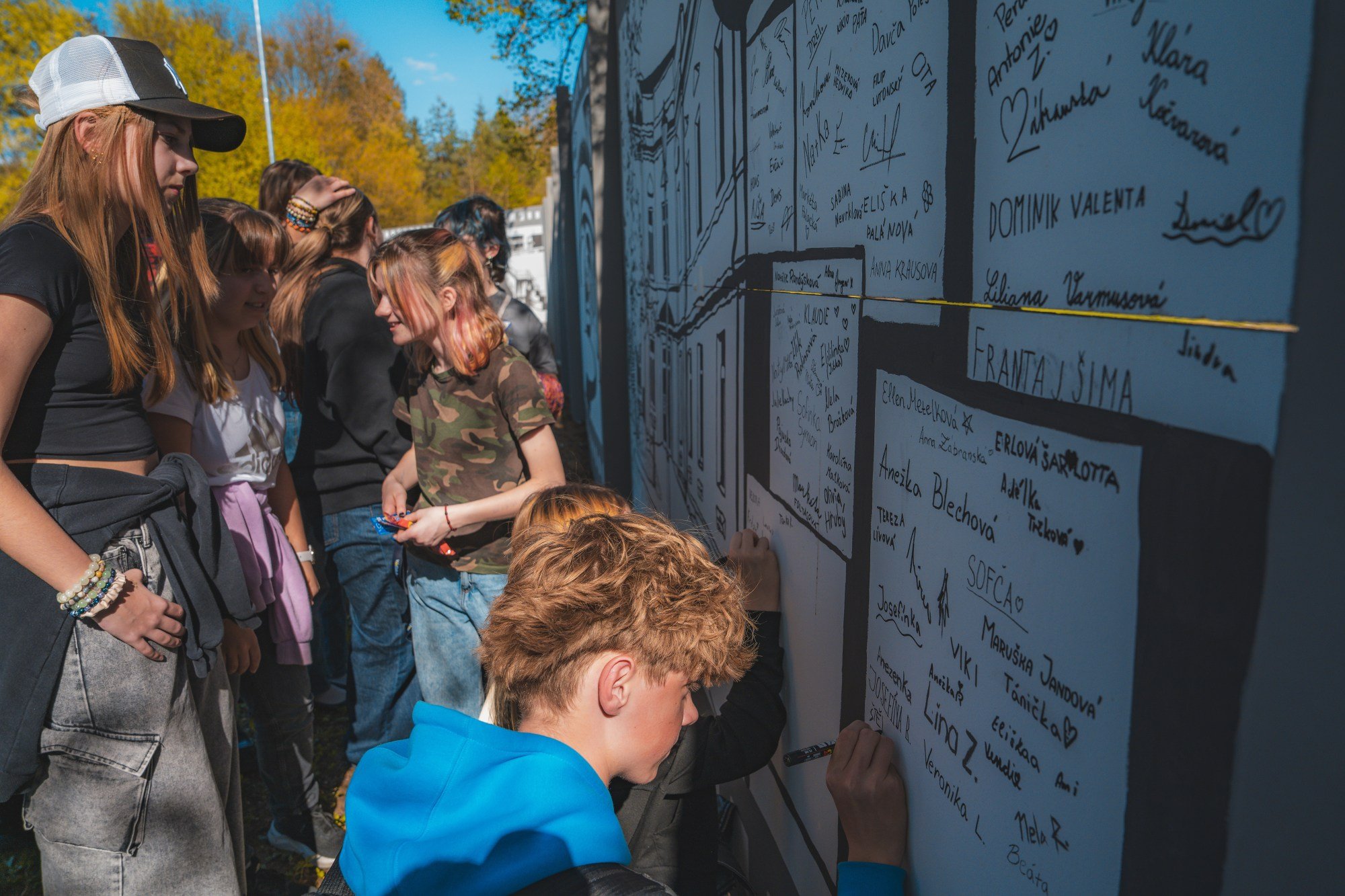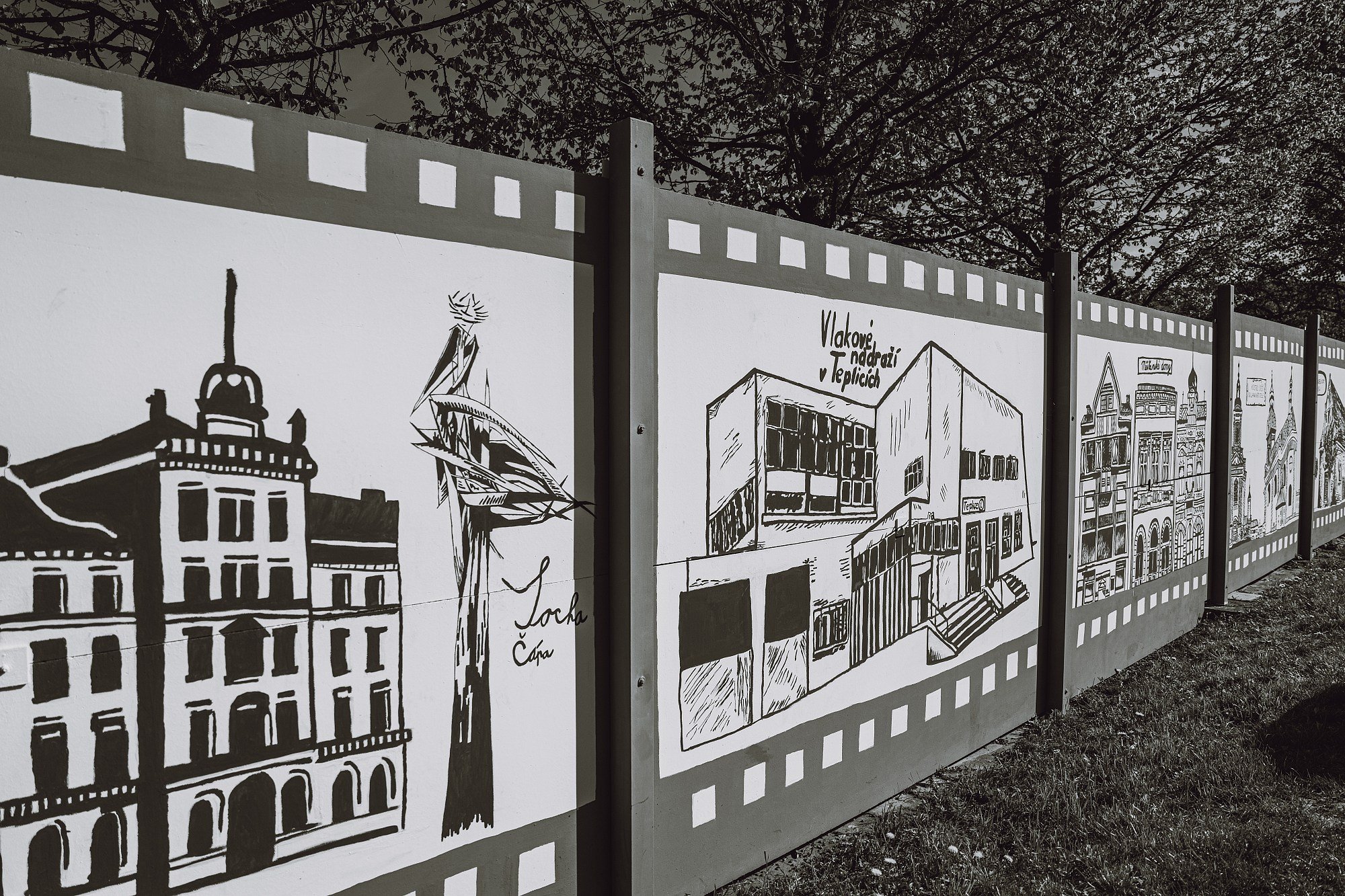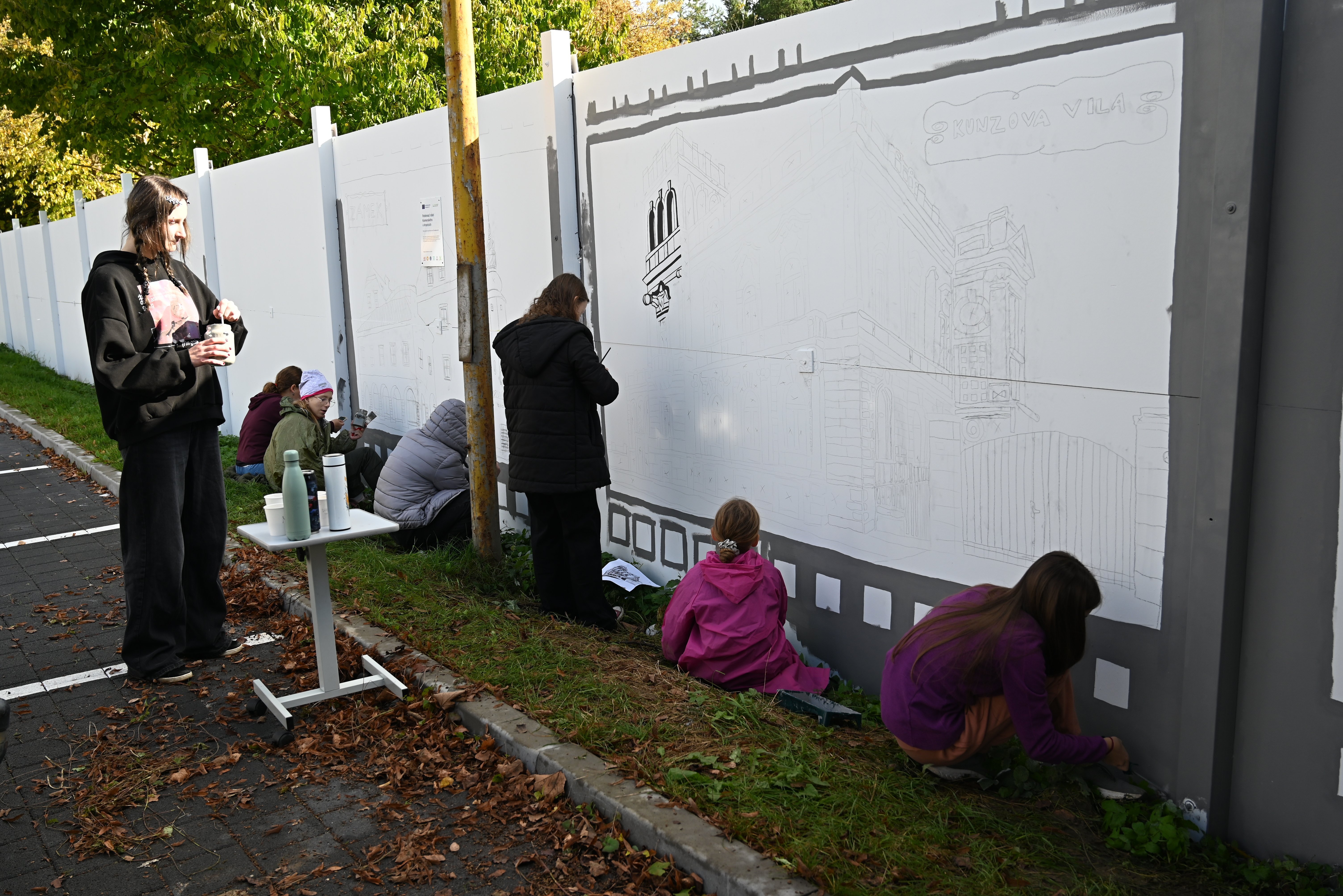 Téměř 80 dětí z Výtvarného oboru hranické ZUŠ zde pod vedením a za pomoci učitelek Evy Vojtěškové a Pavlíny Zábranské namalovalo hranická místa jako například skatepark, Kropáčovu ulici, Kostelíček, Židovský hřbitov a další.