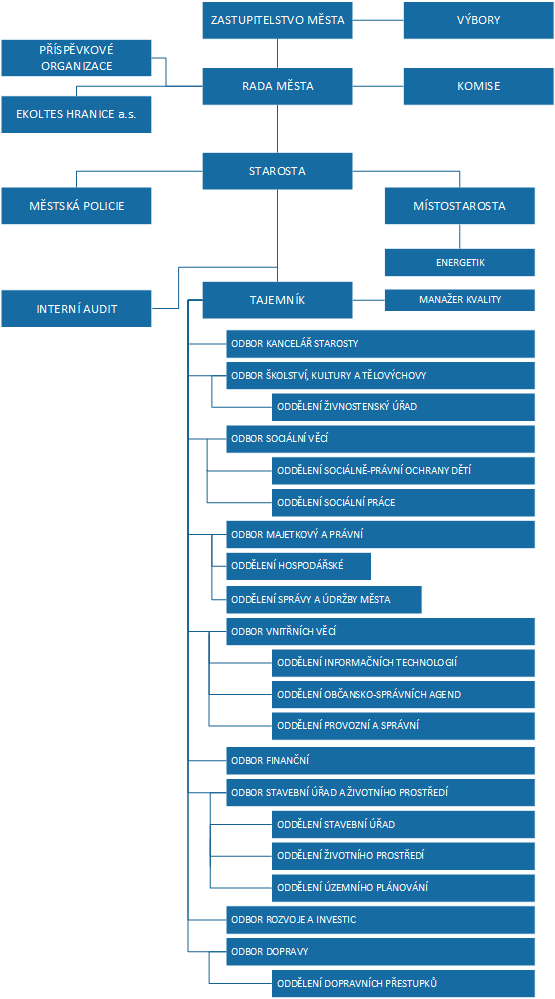více... | Publikováno 20.7.2017Do jeho kompetencí spadá sekretariát vedení (starosta, místostarosta), personální, projektoví manažeři, architekt města. Nepřímo zde spadá také interní auditor, zodpovídající se starostovi města.